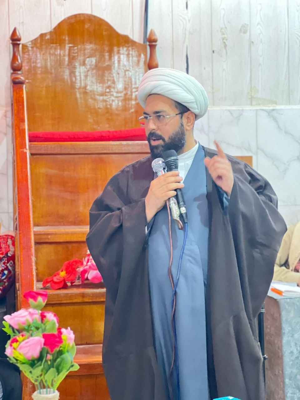 Ayətullah əl Üzma Şeyx Bəşir Hüseyn Nəcəfinin (kölgəsi davamlı olsun) Bəsrədəki ofisinin nümayəndəsi Xanım Zəhranın (s.ə) həyatı və sirəsi barədə mühazirə söyləyib
