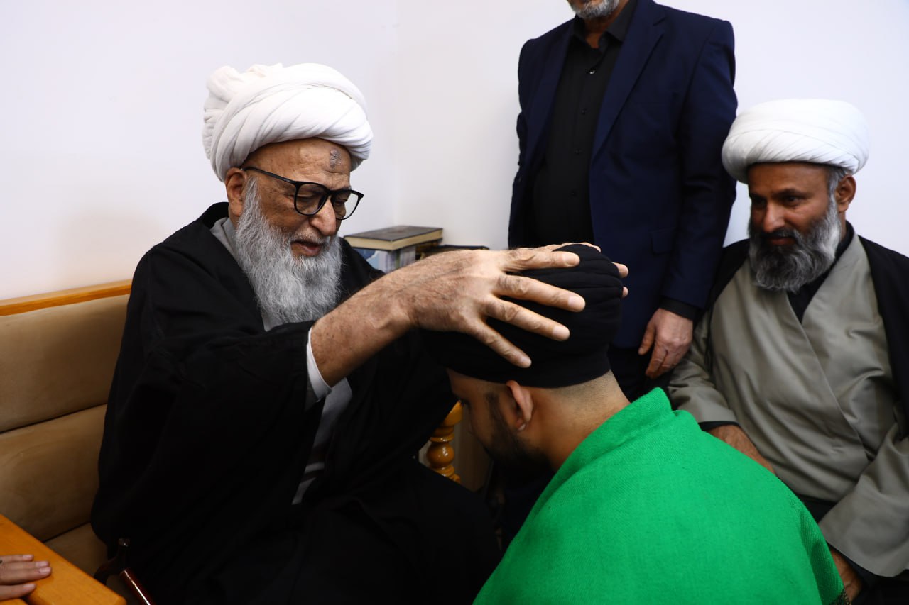 مرجع عالیقدر النجفی (دام ظله) به میمنت سالروز مبعث شریف نبوی، تعدادی از طلاب حوزه علمیه را معمم کردند