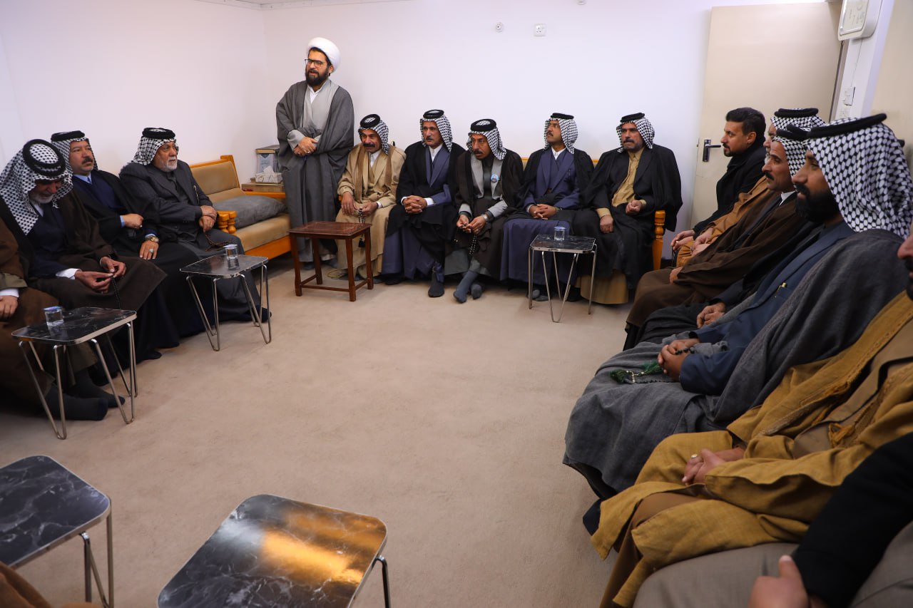 حجةالاسلام والمسلمین جناب آقای شیخ علی النجفی (دام تأییده)، نماینده مرجع عالیقدر جناب آقای النجفی (دام ظله) و مدیر دفتر مرکزی ایشان در نجف اشرف، از هیئتی متشکل از سران و بزرگان عشایر عراق استقبال کردند.در این دیدار، بر نقش برجستهای که عشایر عراق در تقویت هویت اصیل اسلامی و عربی در نفوس نسلها ایفا میکنند، تأکید شد؛ چرا که عشایر به عنوان