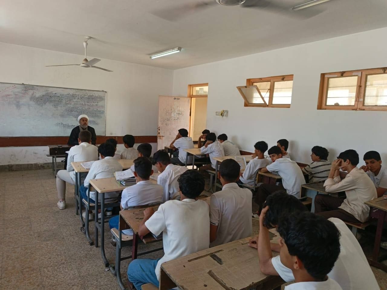 The representative of the Office of His Eminence the Religious Authority Al-Najafi (may Allah prolong his life) in Maysan Province conducted a series of religious outreach and guidance lectures in academic schools in Al-Majjar Al-Kabir District.