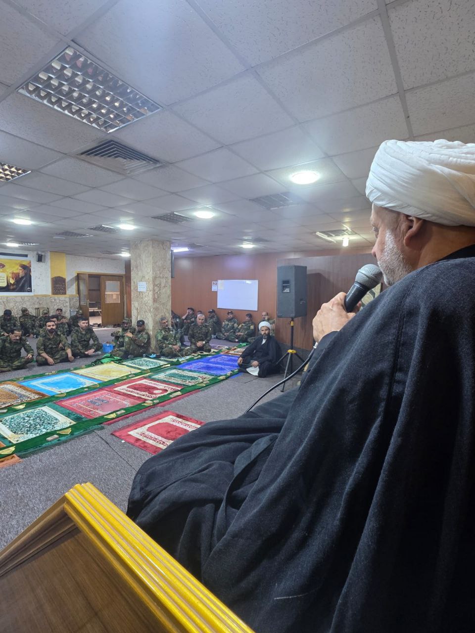 نماينده دفتر مرجع عالیقدر النجفی (دام ظله) در استان نجف اشرف، مجلس عزاداری به مناسبت شهادت امام باقر و مسلم بن عقيل (عليهما السلام) را در يكی از مقرهای قهرمانان فتوای جهاد کفایی در استان مقدس كربلا برپا كردند.