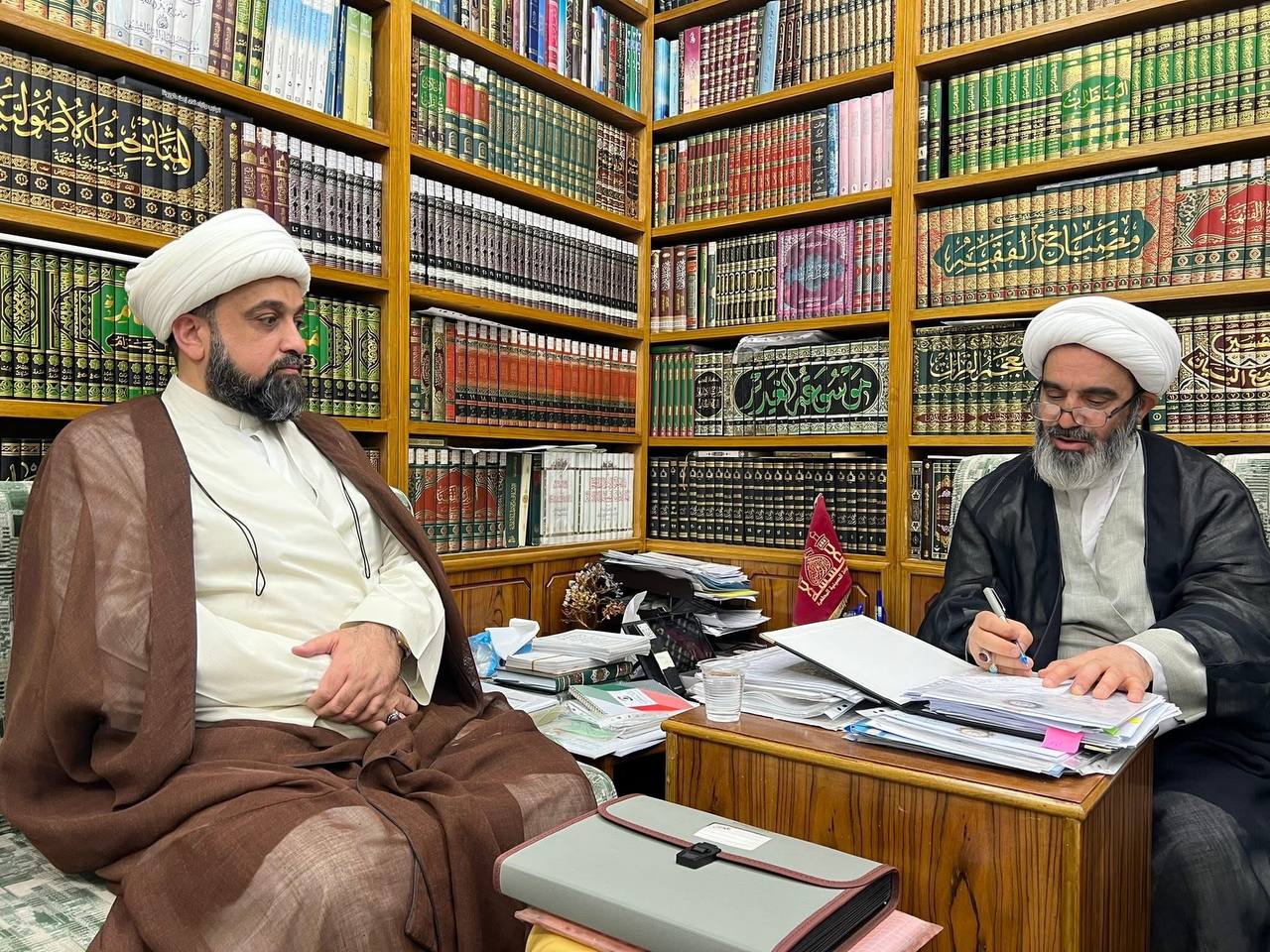 نماينده دفتر مرجع عالیقدر النجفی در استان بغداد با رئيس بخش مدارس دينی در آستان مقدس حسينی ديدار میكند.