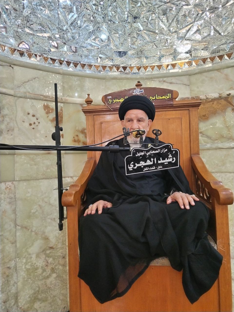 نماينده دفتر مرجع عالیقدر النجفی (دام ظله) در استان بابل/ مرکز، مجلسی عزاداری را برای بزرگداشت شهادت مسلم بن عقیل (سلام الله علیه) در مرقد صحابی رشید الهجری برپا كرد.