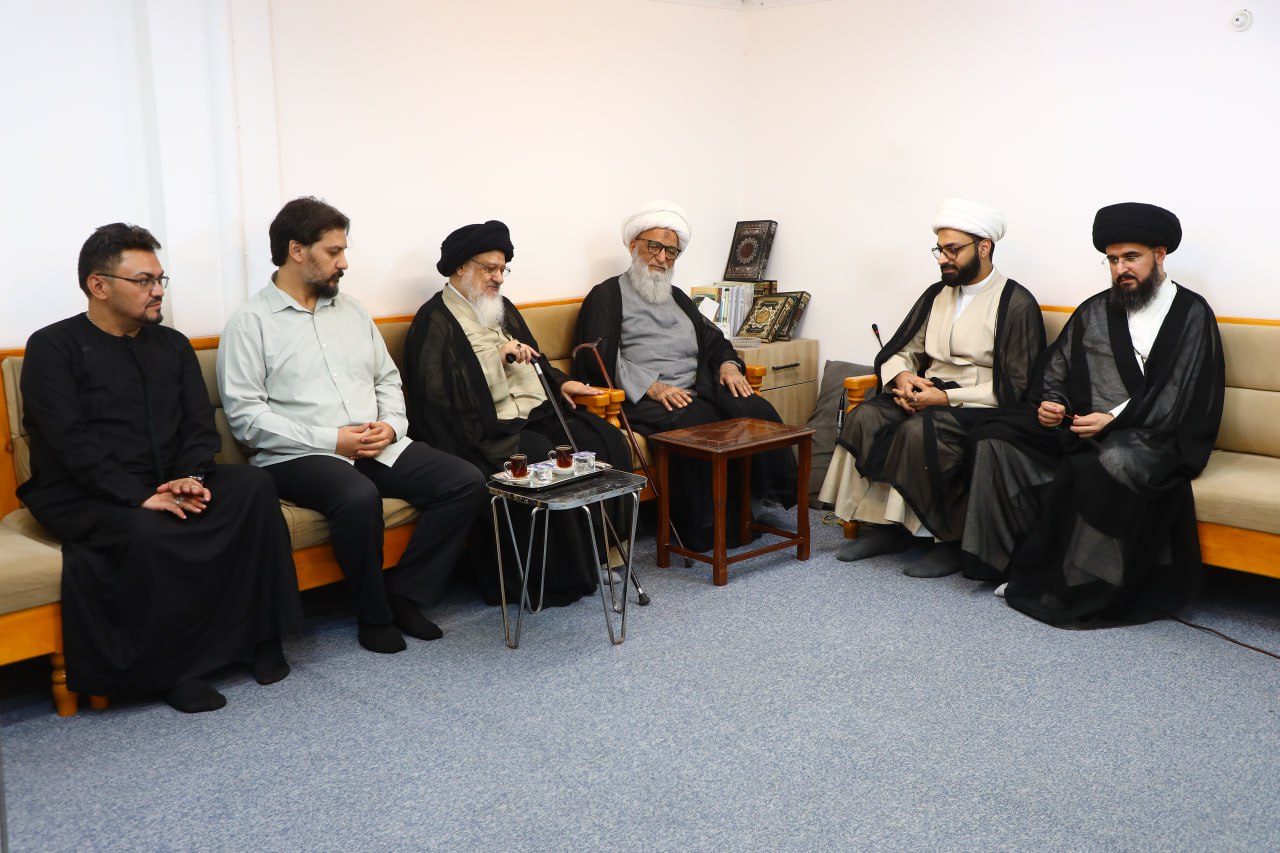مرجع عالیقدر النجفي (دام ظله) علامه میلانی را پذیرفتند و بر جایگاه جهانی حوزه علمیّه نجف تأکید نمودند